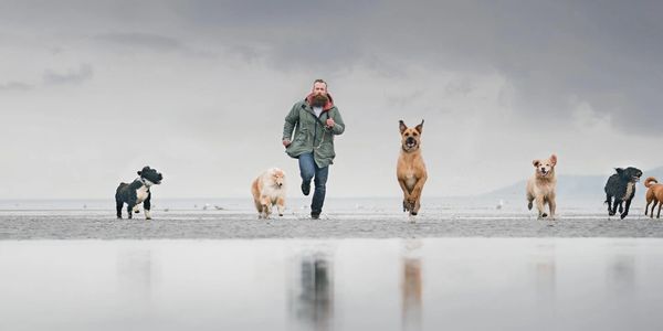 Building confidence and pack social behaviour in a safe environment with experienced dog handlers