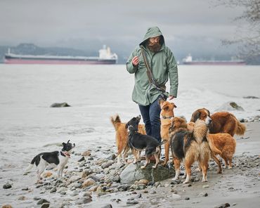 Building confidence and pack social behaviour in a safe environment with experienced dog handlers